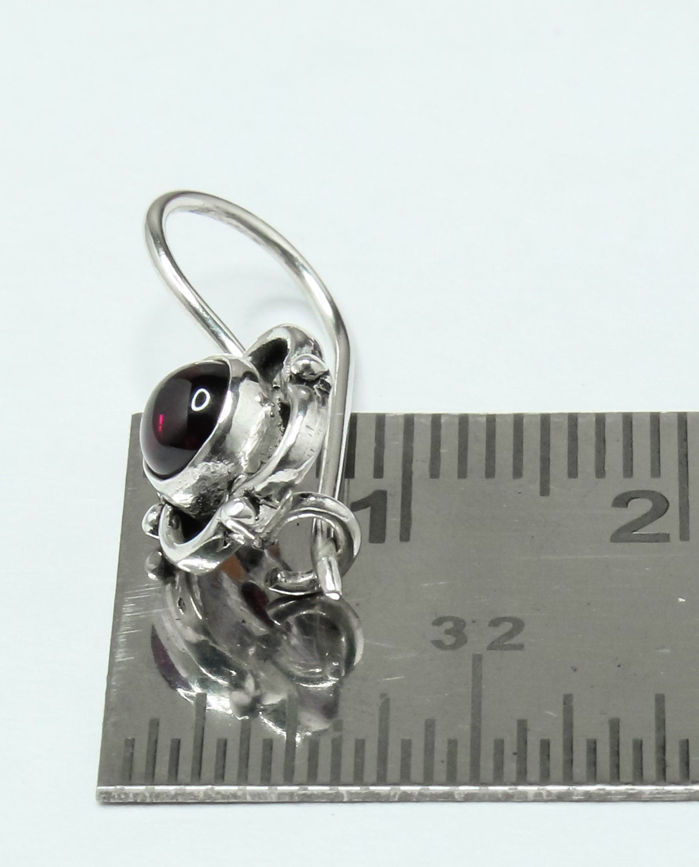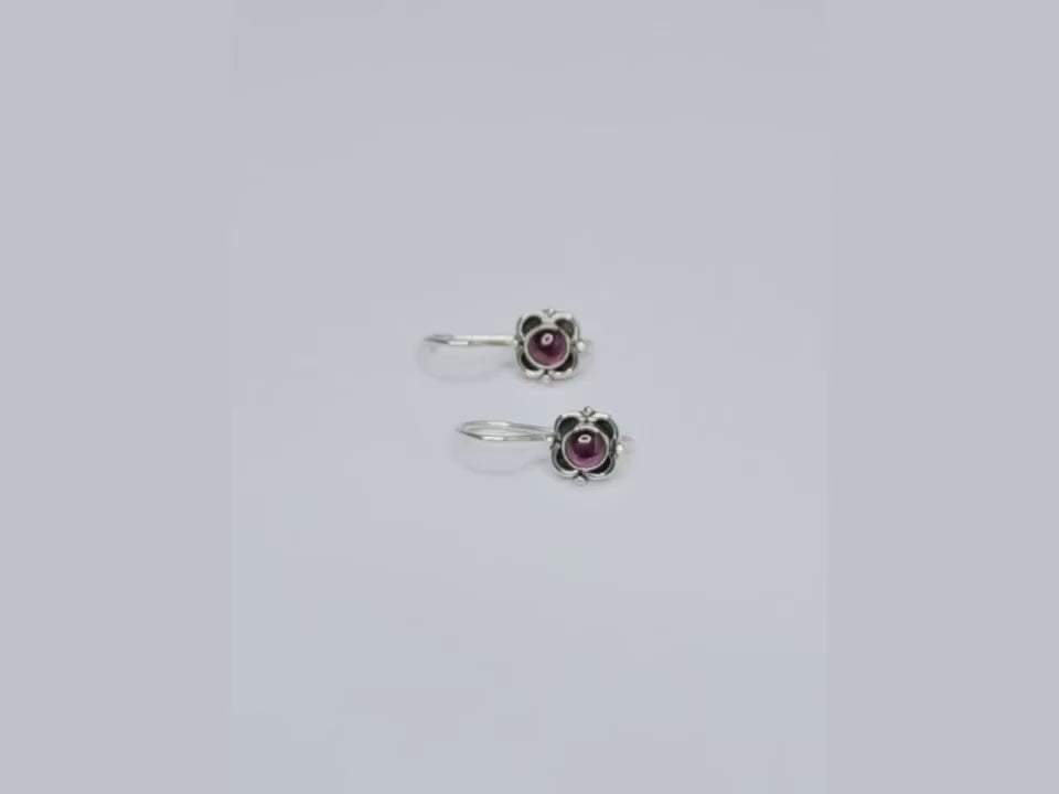These beautiful flower red garnet Latch-Back earrings are set in solid oxidized silver. These flower shaped earrings will make a perfect gift for those with Capricorn Zodiac and those born in January.
