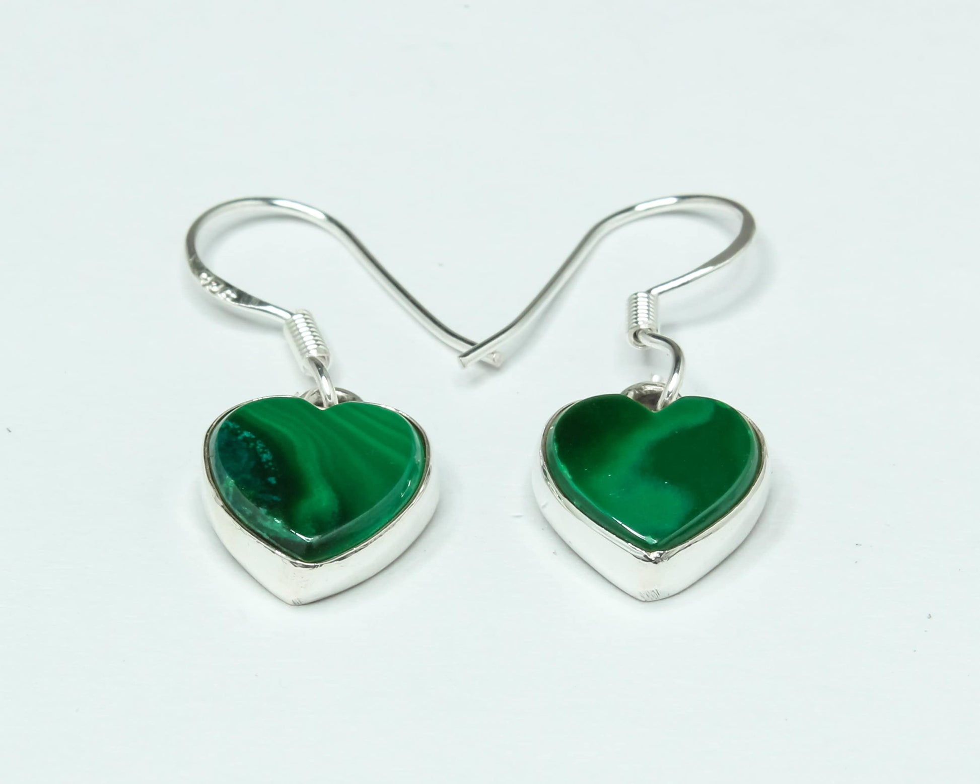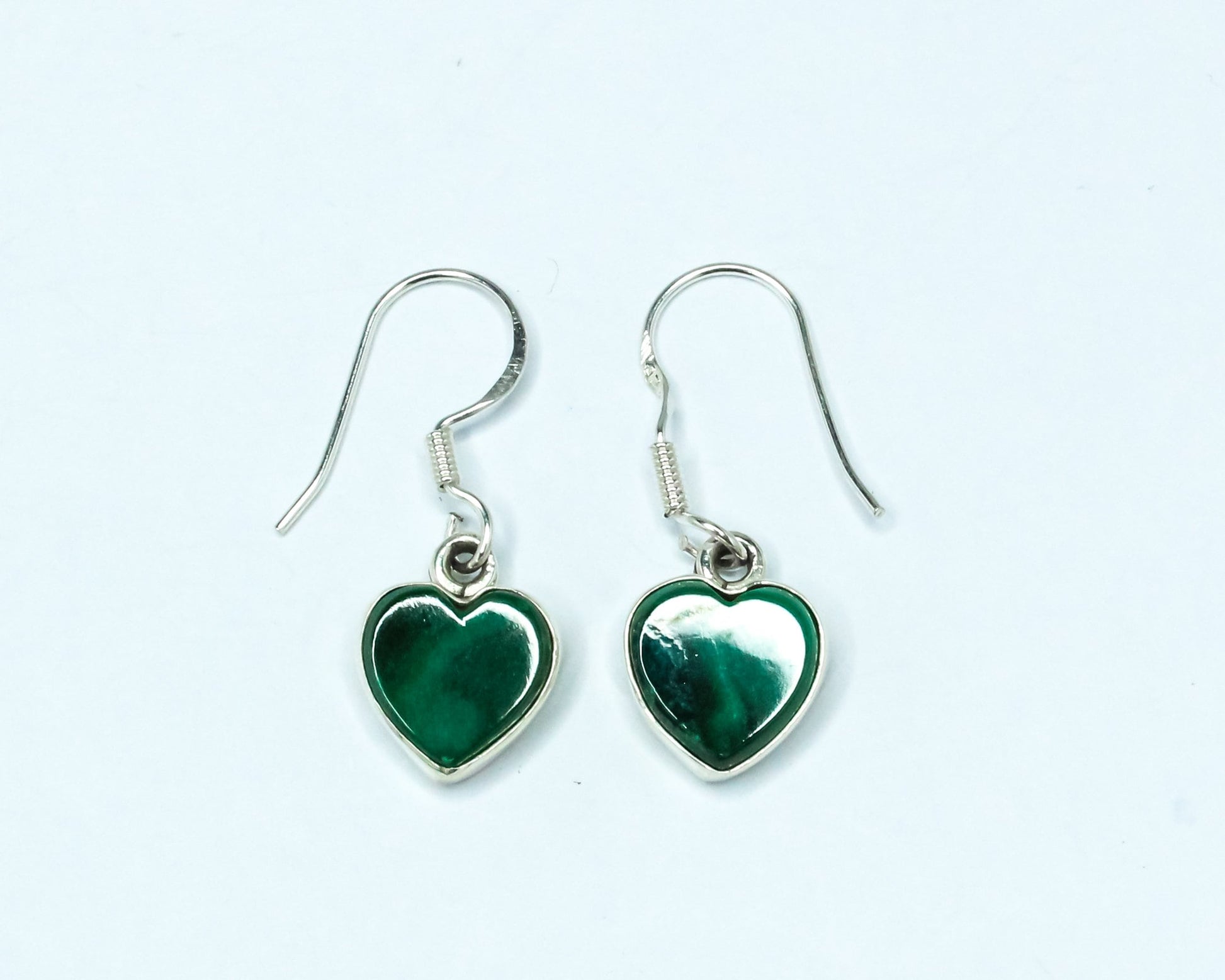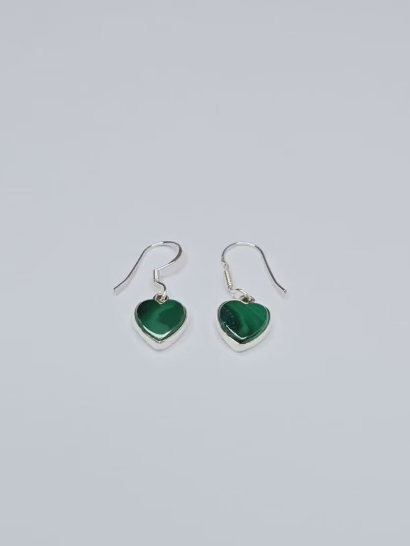 Heart Green Malachite Textured Gemstone Solid 925 Silver Drop Earrings