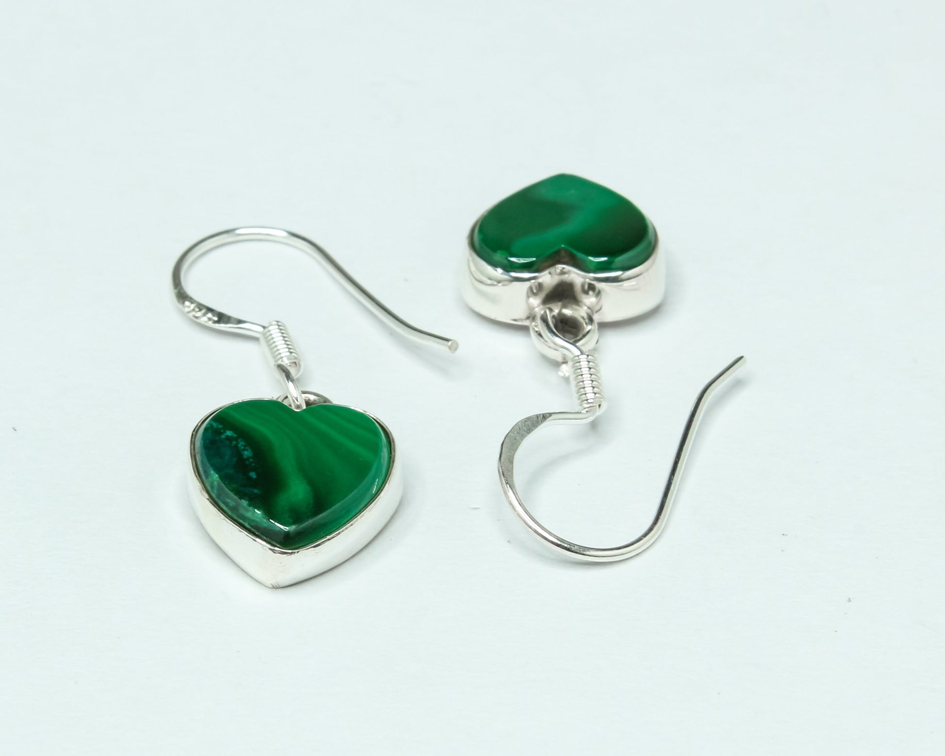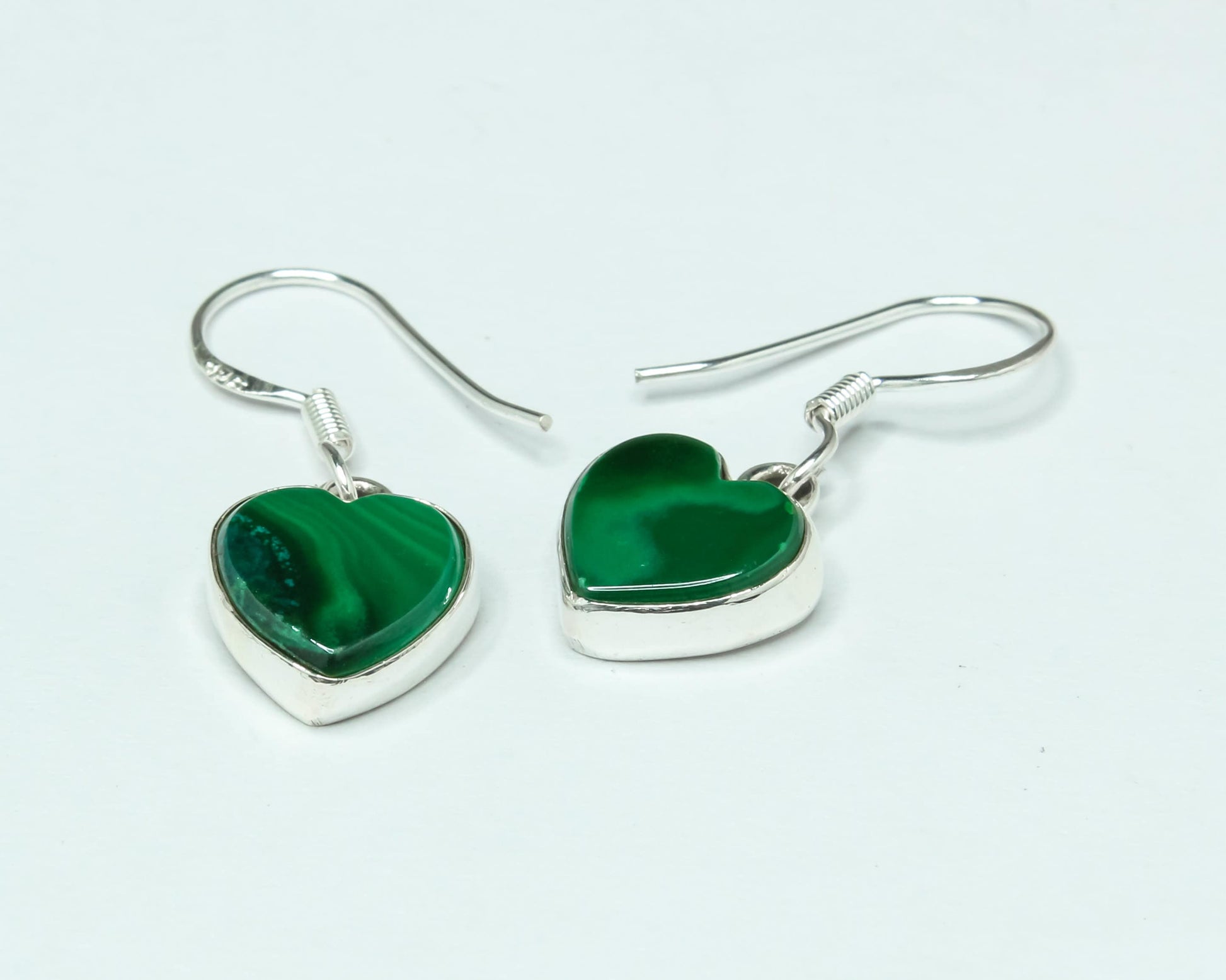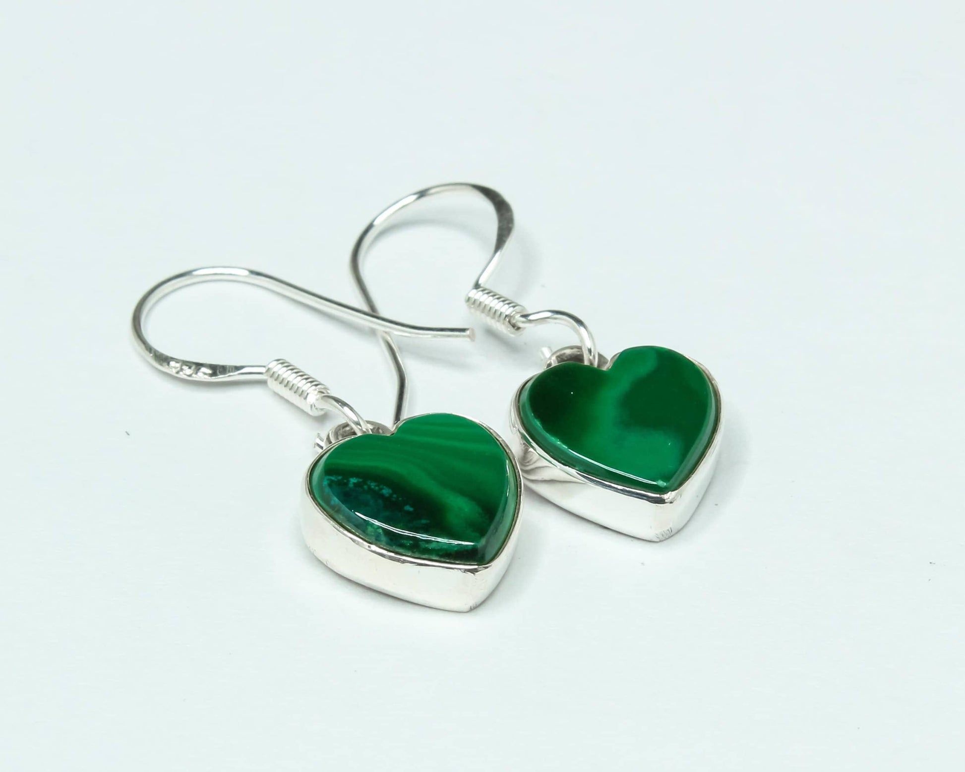 Heart Green Malachite Textured Gemstone Solid 925 Silver Drop Earrings