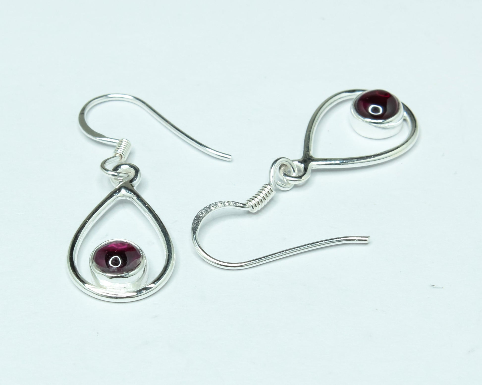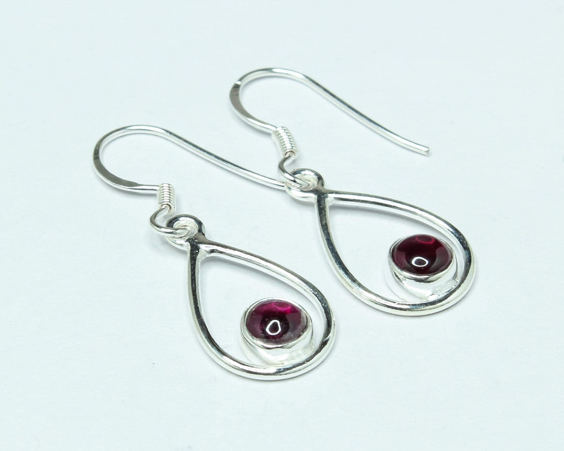 These beautiful round red garnet pear/teardrop shaped drop earrings are set in solid 925 sterling silver. These pear/teardrop shaped earrings will make a perfect gift for those with Capricorn Zodiac and those born in January.