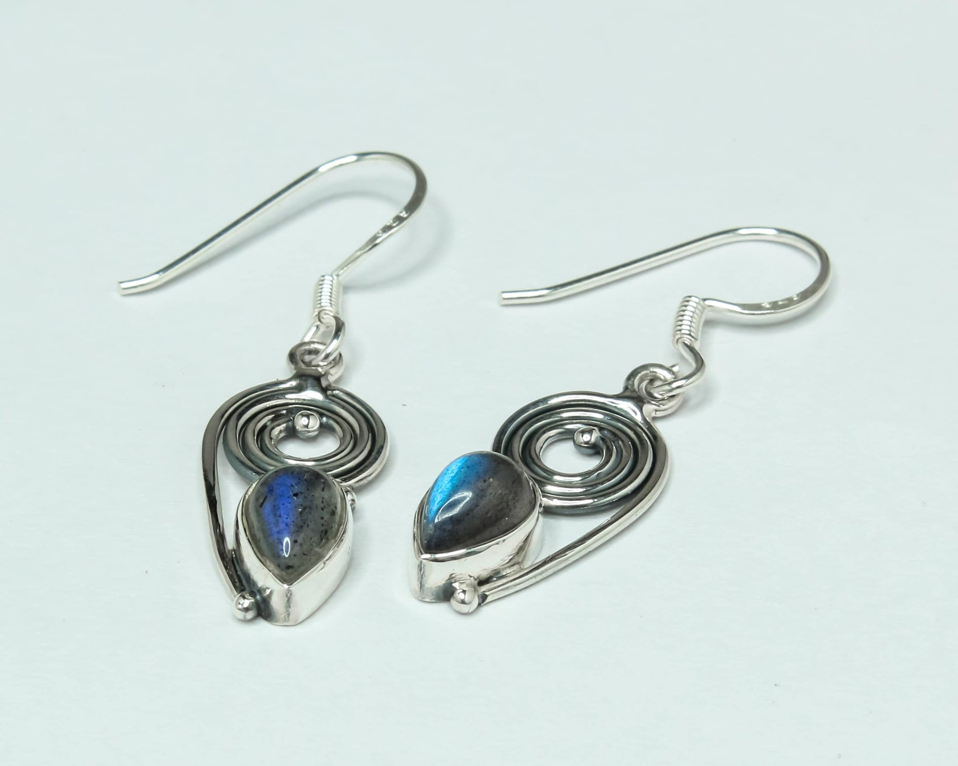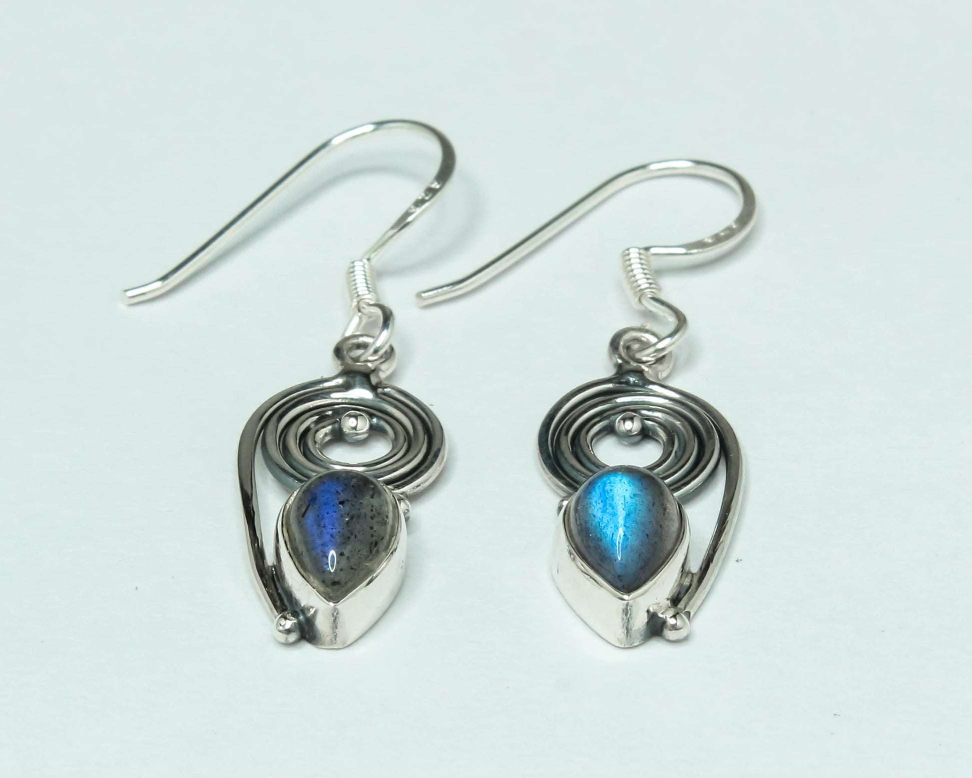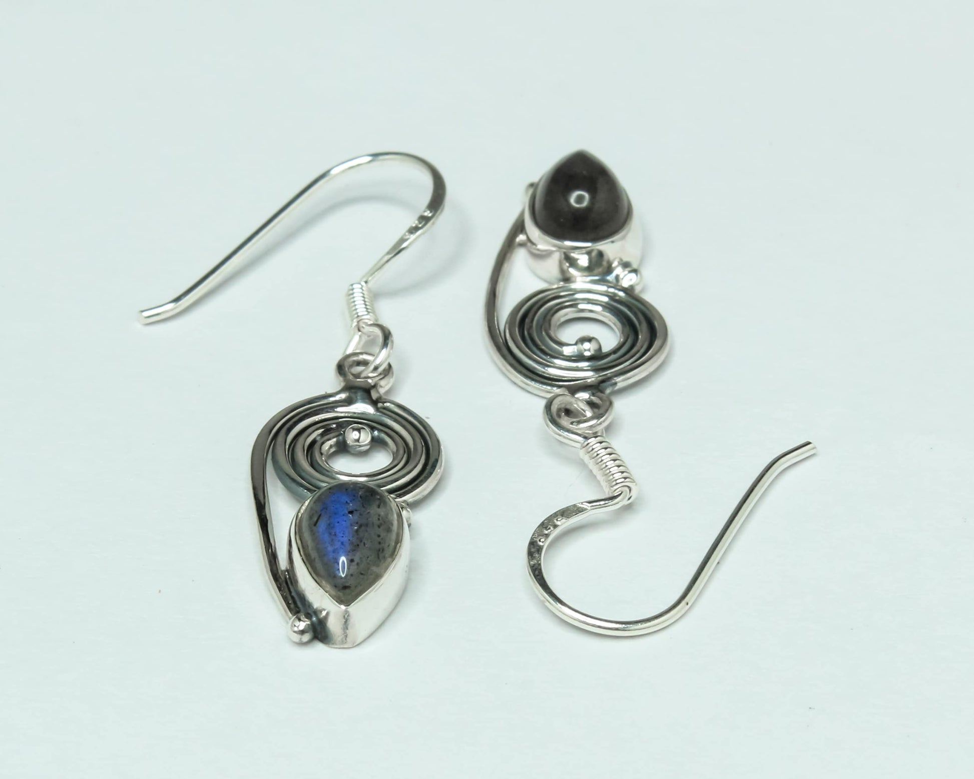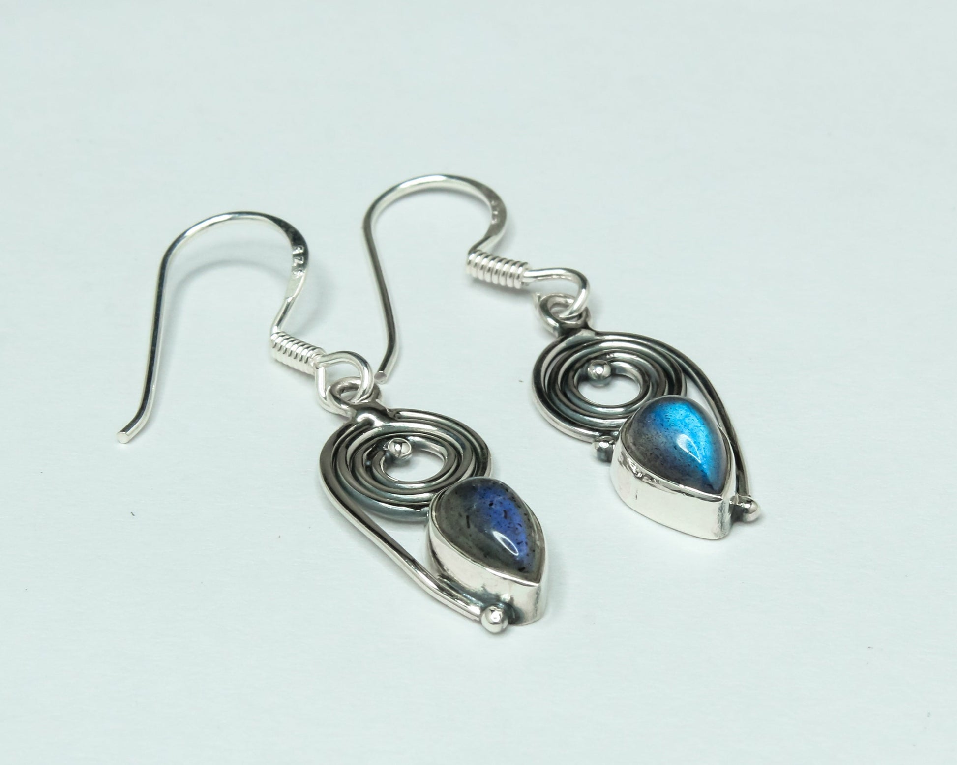 These Blue gray colored Labradorite earrings are set in Solid 925 Sterling Silver. These Bohemian style earrings will make a perfect gift for those born in Feb and March or those with Leo, Scorpio and Sagittarius zodiac.