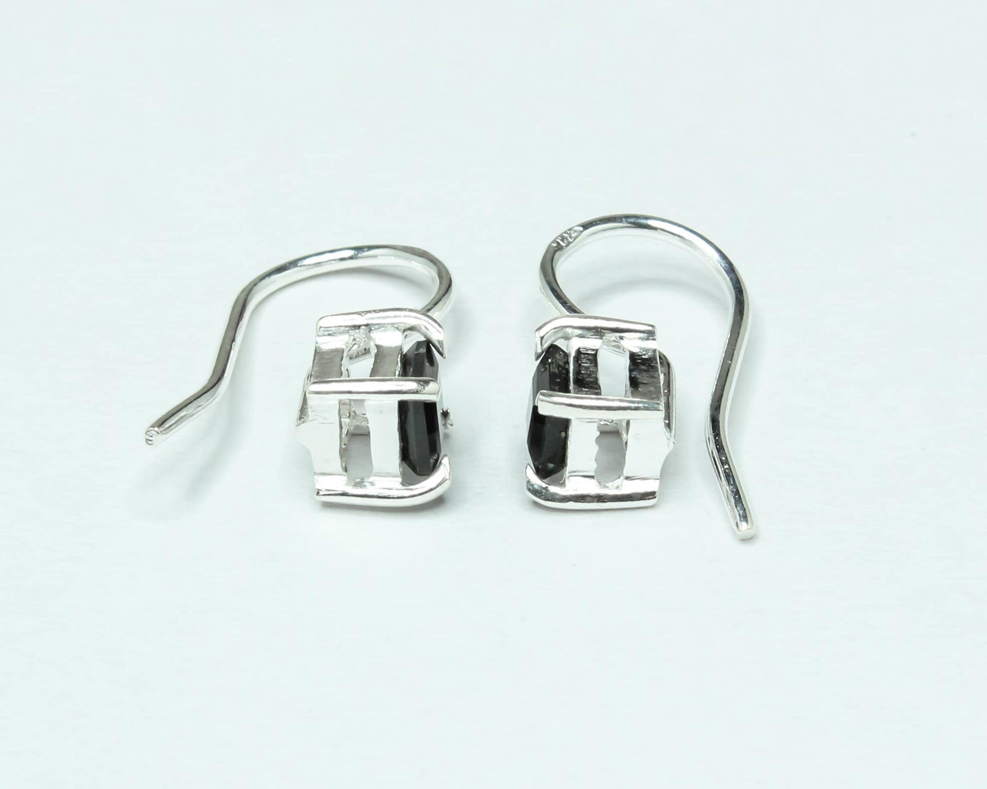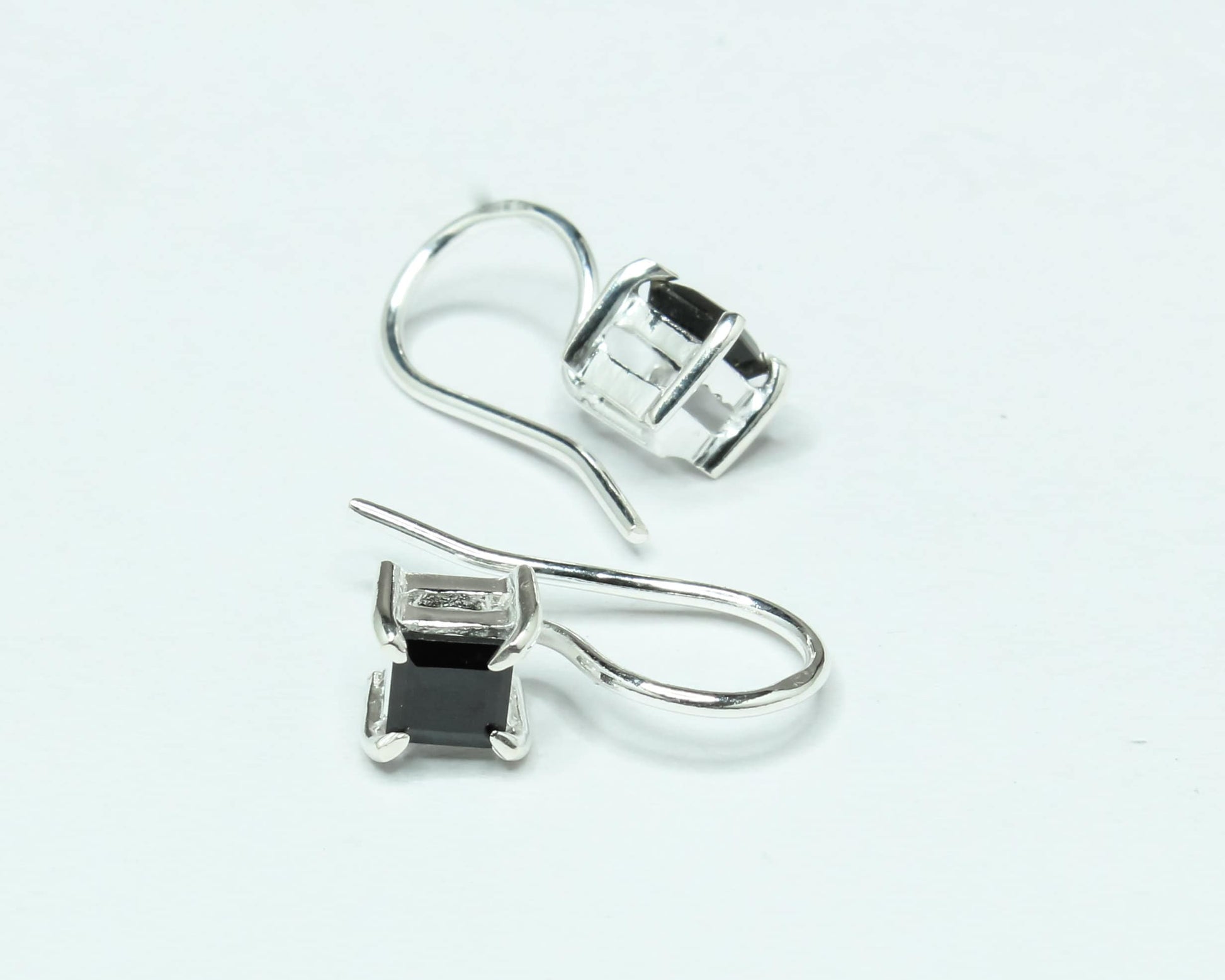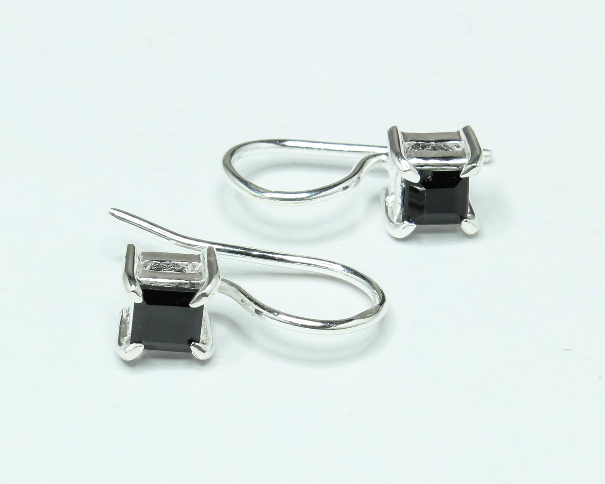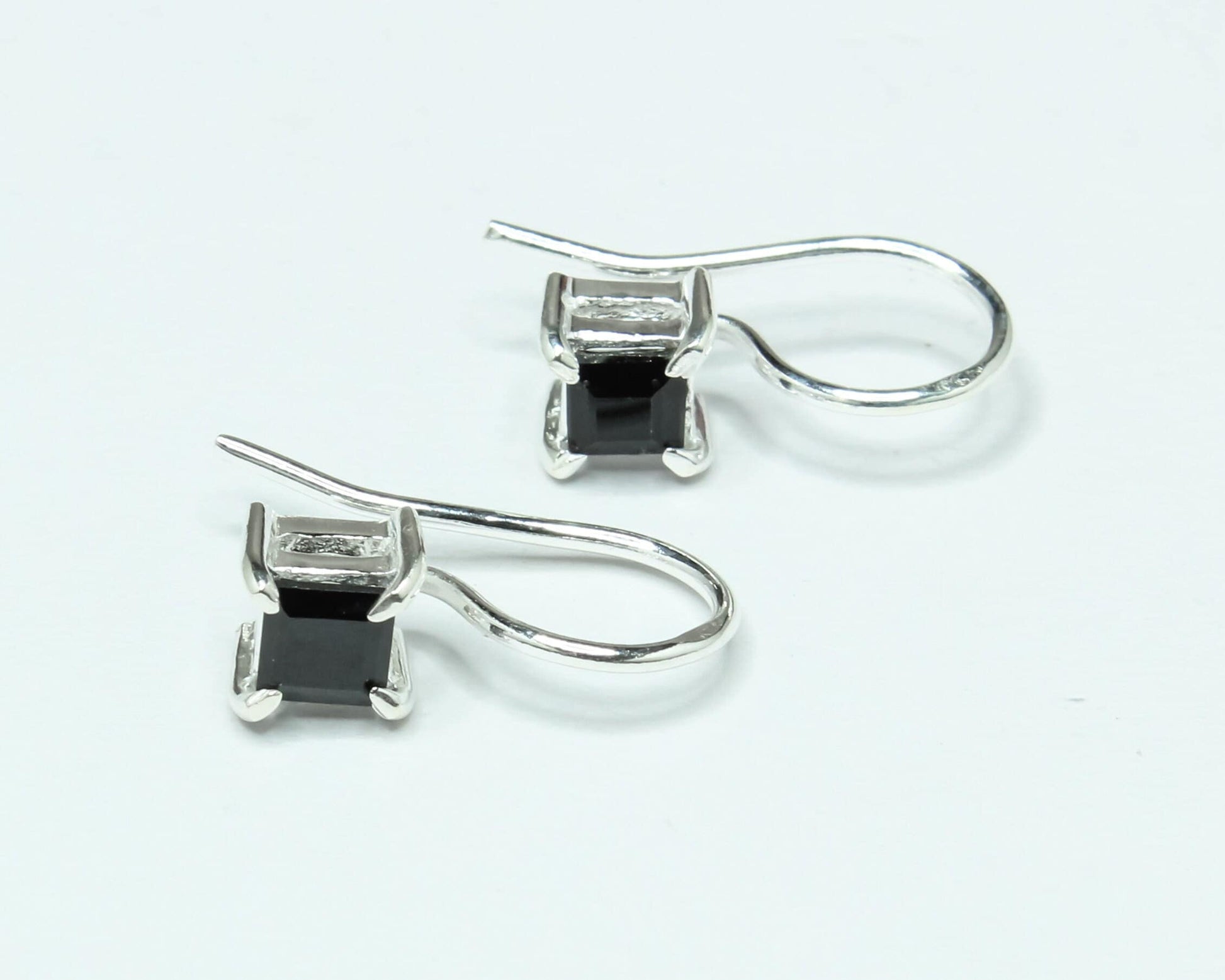 Square Black ONYX Gems 925 Silver Simple Prong Set Latch-Back Earrings