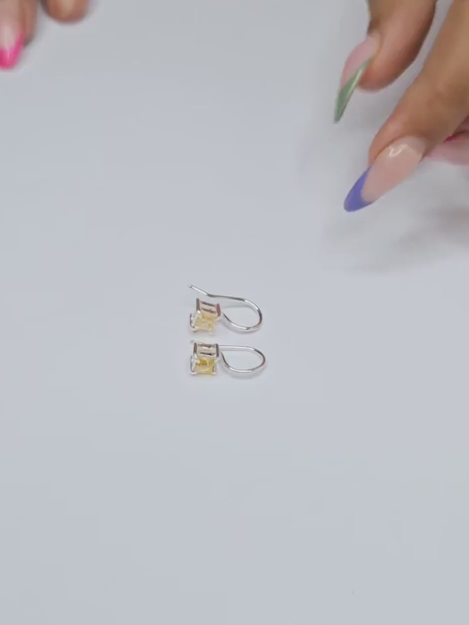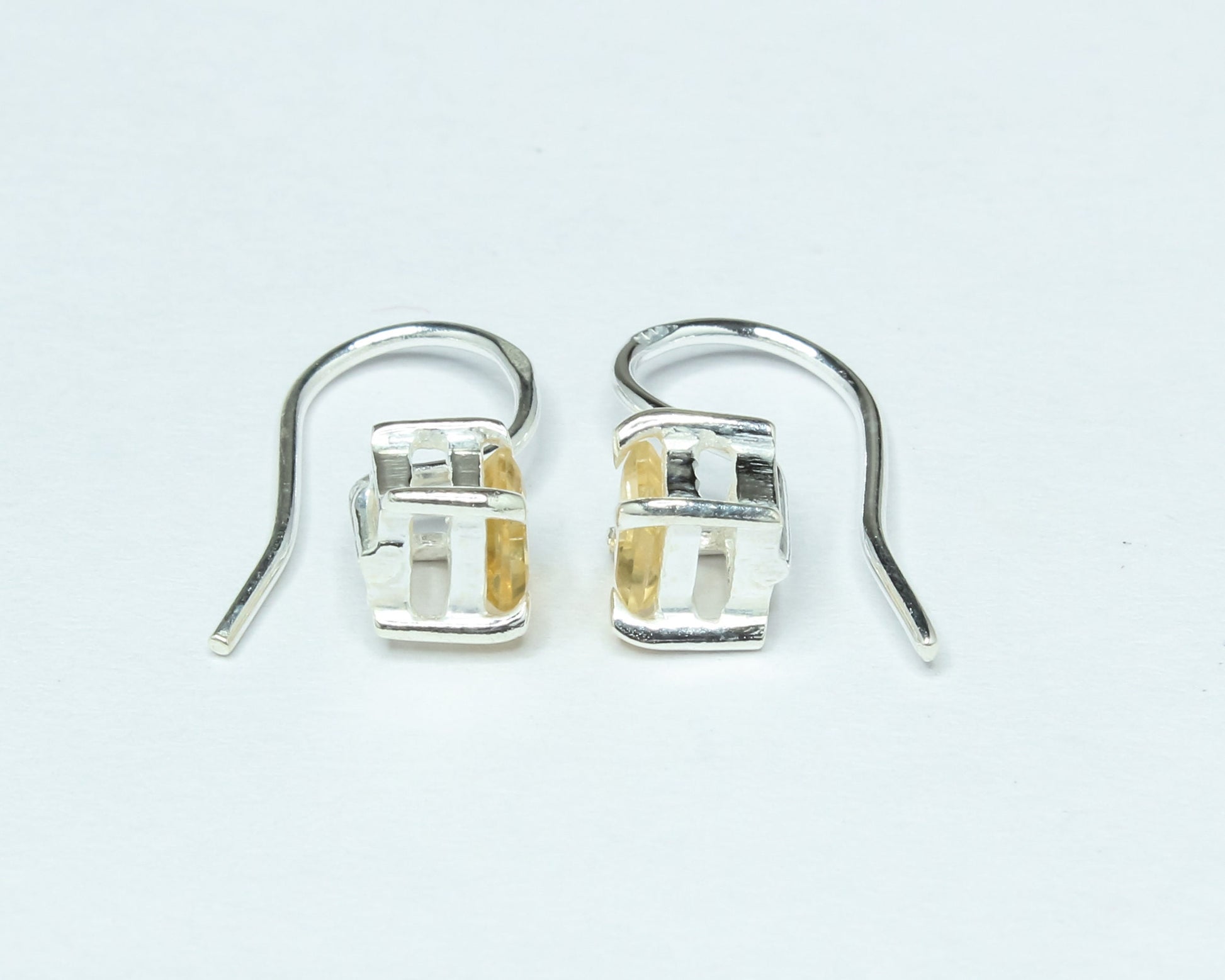 Square Genuine Citrine 925 Silver Simple Prong Set Latch-Back Earrings