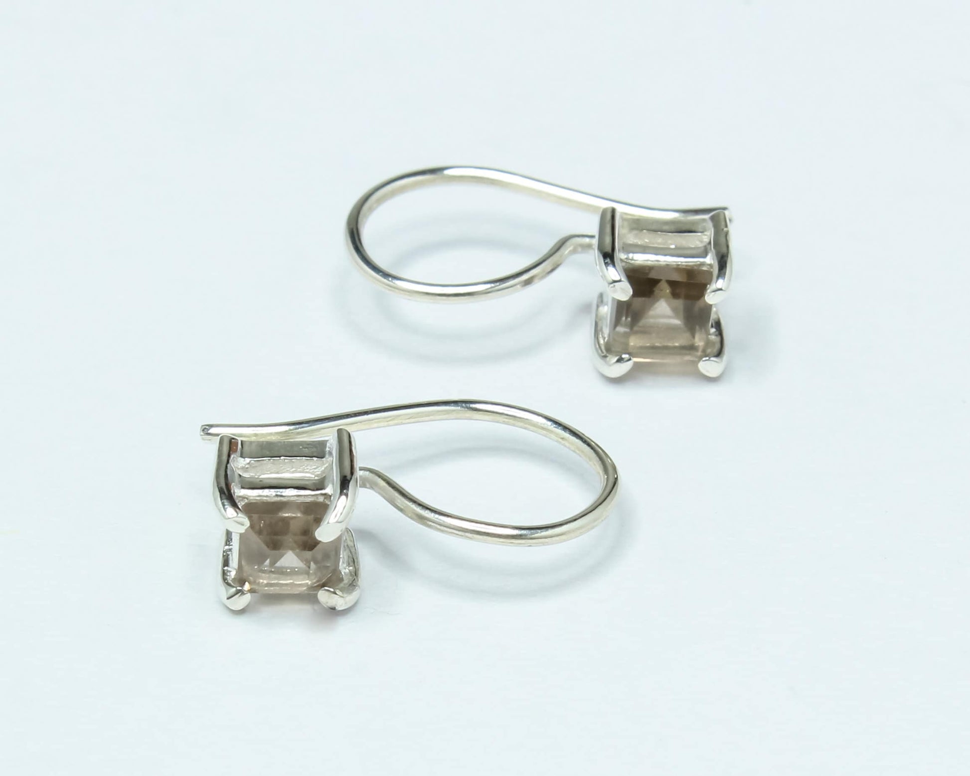 These Square shaped cut-stone natural brown smoky quartz are set in solid 925 sterling silver. These minimalist Latch-Back earrings will make a perfect casual gift.
